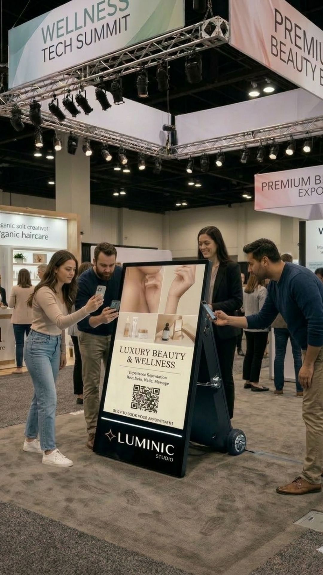 On Luminic Display, you can add QR codes to capture leads instantly, and update them anytime directly from the app, no redesign needed.